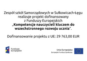 Projekt „Kompetencje nauczycieli kluczem do wszechstronnego rozwoju ucznia” realizowany w ramach Programu Operacyjnego WIEDZA EDUKACJA ROZWÓJ (PO WER)- Ponadnarodowa mobilność kadry edukacji szkolnej dofinansowany z Funduszy Europejskich.