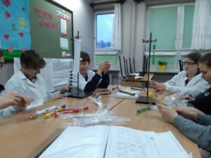 Na dzisiejszych zajęciach Eureki z chemii otrzymywaliśmy mydła z wyższych kwasów karboksylowych i tłuszczów oraz przeprowadzaliśmy reakcję zaprawy hydraulicznej.