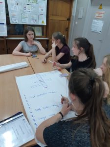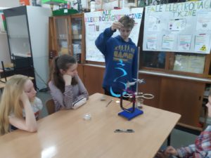W maju odbyły się zajęcia terenowe z biologii, w trakcie których oznaczaliśmy porosty. Organizmy te są bioindykatorami. Rozpoznawaliśmy również gatunki ślimaków, pająków, motyli i roślin łąkowych. Podczas zajęć z chemii uczyliśmy się rozwiązywać zadania tekstowe z rozpuszczalności substancji w wodzie oraz ze stężenia procentowego roztworów.