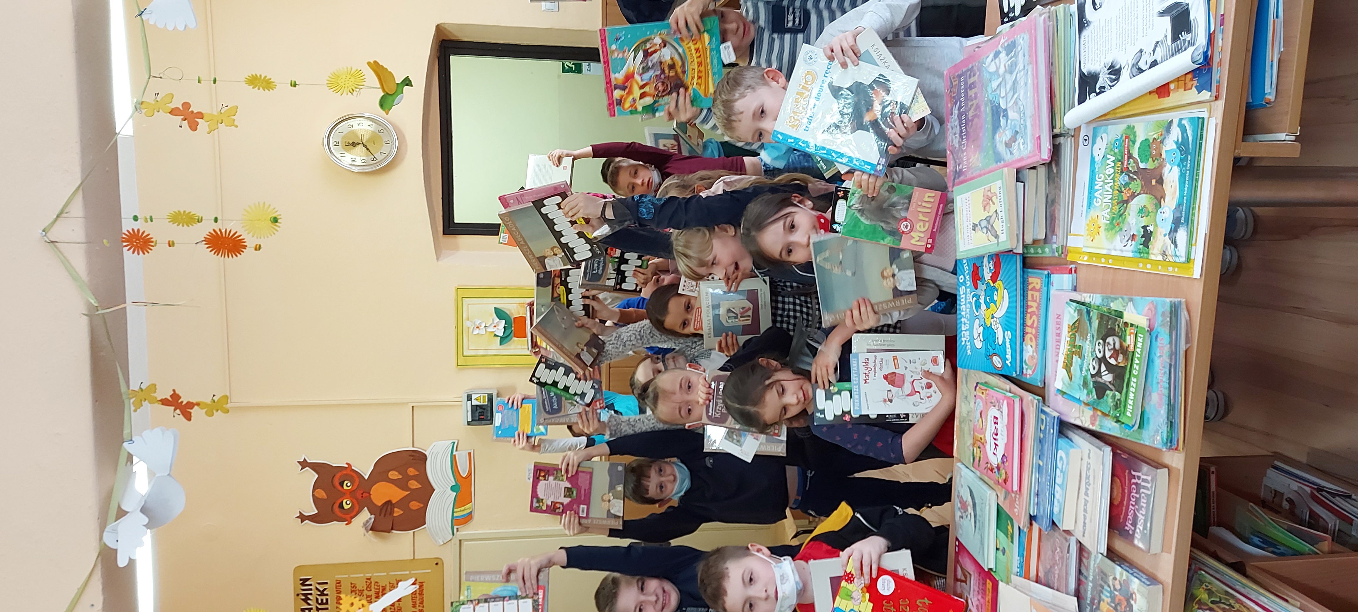 W dniu 11 II w Szkolnej Bibliotece odbyło się przyjęcie klas pierwszych do grona czytelników biblioteki. Dzieci zapoznały się z ogólnym księgozbiorem biblioteki szkolnej, głównie z księgozbiorem dla najmłodszych czytelników, który wyróżnia się szczególną dekoracyjnością. To miejsce, które dzieci od razu rozpoznały jako swój książkowy zakątek w bibliotece. Spotkanie rozpoczęło się od wspólnego omówienia zalet czytania, dzieci doskonale już wiedzą jakie ważne i pozytywne wartości przynosi dla każdego dziecka czytanie książek, jak bardzo wspiera rozwój młodego człowieka. Najpiękniejsze podsumowanie korzyści i radości płynących z czytania dzieci usłyszały w wierszu Magia książek. Mali czytelnicy z radością włączyli się również do zabawy Zgaduj- Zgadula – jaka to baśń? Na podstawie ilustracji skojarzeniowych dzieci odgadywały tytuły baśni H. Ch. Andersena, Ch. Perraulta oraz braci Grimm. Na zakończenie zajęć każdy nowy czytelnik wypożyczył swoją pierwszą książkę, otrzymał też kolorową zakładkę. Również w darze wszyscy otrzymali Książeczki ze środków Ministerstwa Kultury i Dziedzictwa Narodowego w ramach kampanii Książką połączeni . Mała książka – wielki człowiek. Pozycja ta powstała aby przypominać rodzicom, że jednym z największych wyzwań, jakie stoi przed ich dzieckiem u progu szkolnej edukacji, jest nauka czytania, w której powinni mu towarzyszyć, dawać wsparcie i pomagać odkrywać radość płynącą z lektury. Uśmiech na każdej buzi oraz radość, dowodzą, iż dzieci od najmłodszych lat związane są z książką, która sprawia im dużą przyjemność. Życzymy, aby ta fascynująca podróż z książką trwała przez całe życie!