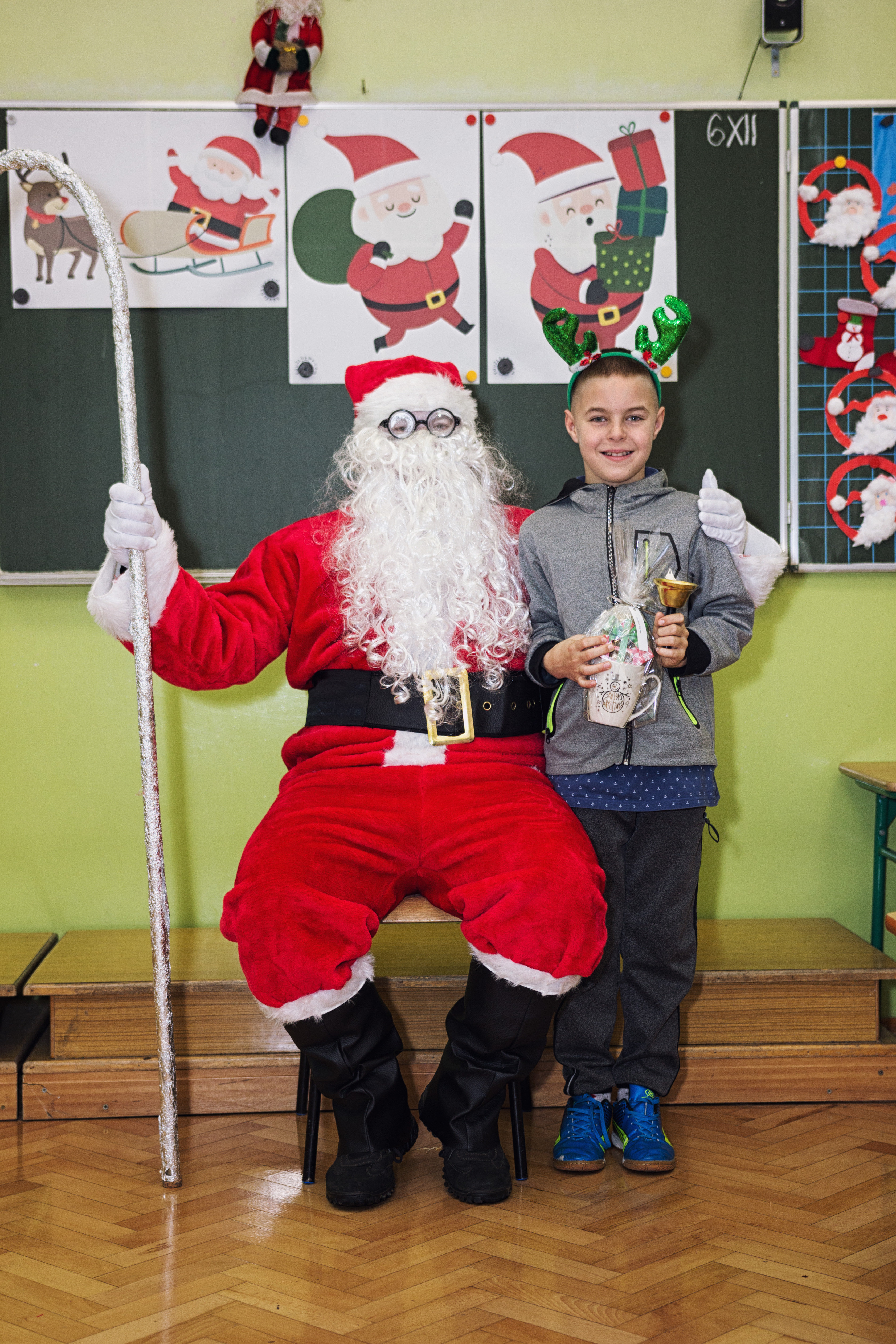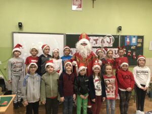 Mikołajki to święto, na które z niecierpliwością czekają zarówno dzieci, jak i dorośli. Kojarzone jest głównie z postacią pogodnego staruszka w okularach i czerwonym stroju, z ogromnym workiem prezentów. Do uczniów naszej szkoły również przybył wyczekiwany przez wszystkich gość. Dzieci z najmłodszych klas z wypiekami na twarzy i z nieskrywaną radością odpakowywały zamówione w listach prezenty.