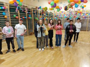W czwartkowy wieczór w zabawie karnawałowo-walentynkowej wzięli udział uczniowie klas 4-8. Gwoździem programu była loteria fantowa oraz wybory Króla i Królowej balu, którymi zostali Franciszek i Nadine.