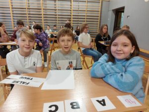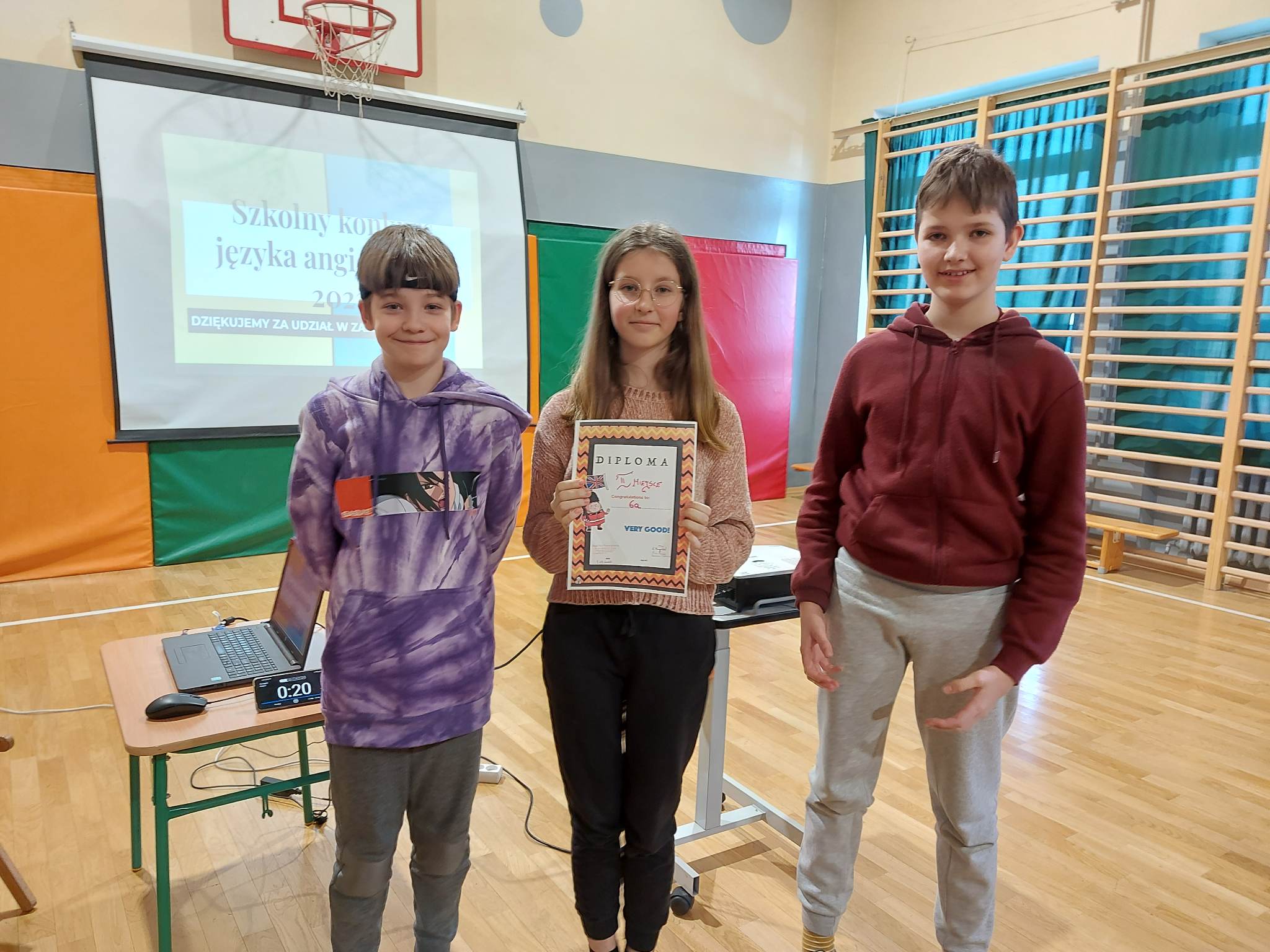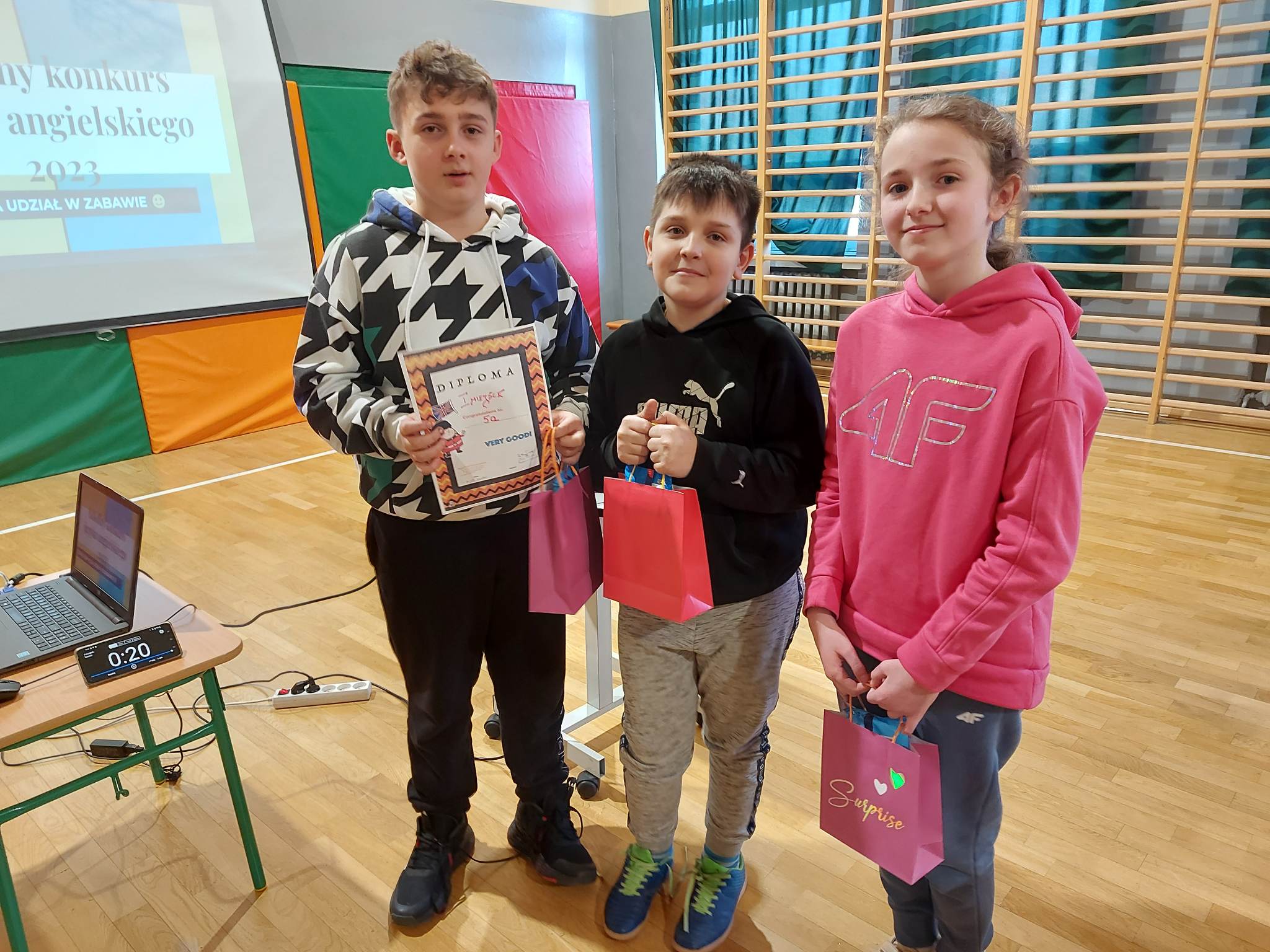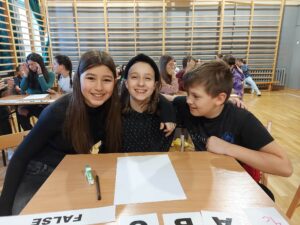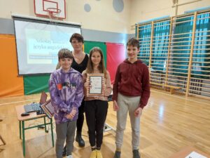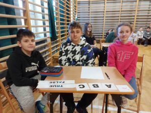 – I miejsce zdobyła drużyna z klasy 5a w składzie Matthew Trójniak, Nikola Cibor, Mateusz Bizoń uzyskując 28 punktów.