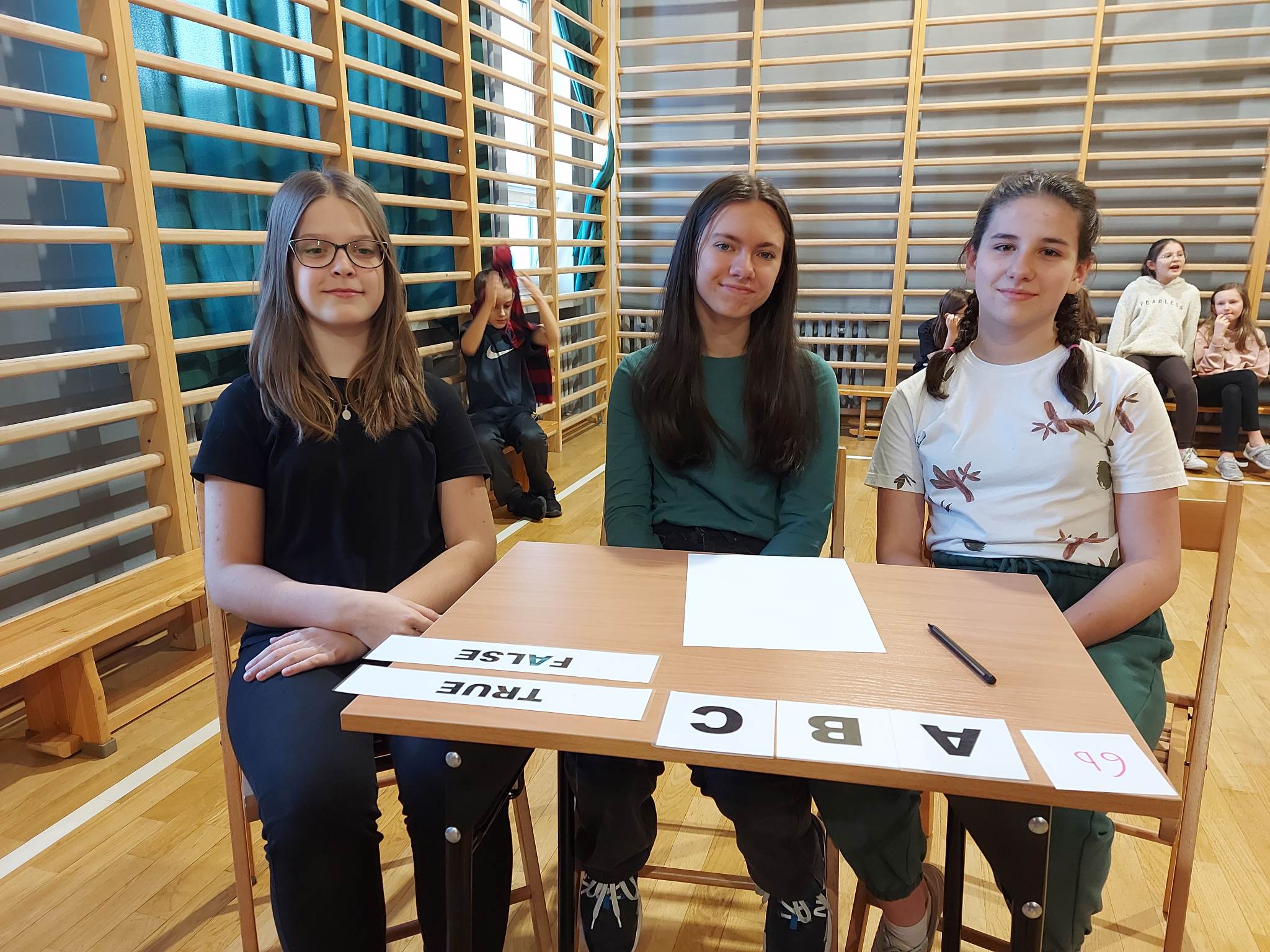 – I miejsce zdobyła drużyna z klasy 8c w składzie Natalia Ptasznik, Julia Rajda, Karol Kuśnierz z wynikiem 33 punkty.