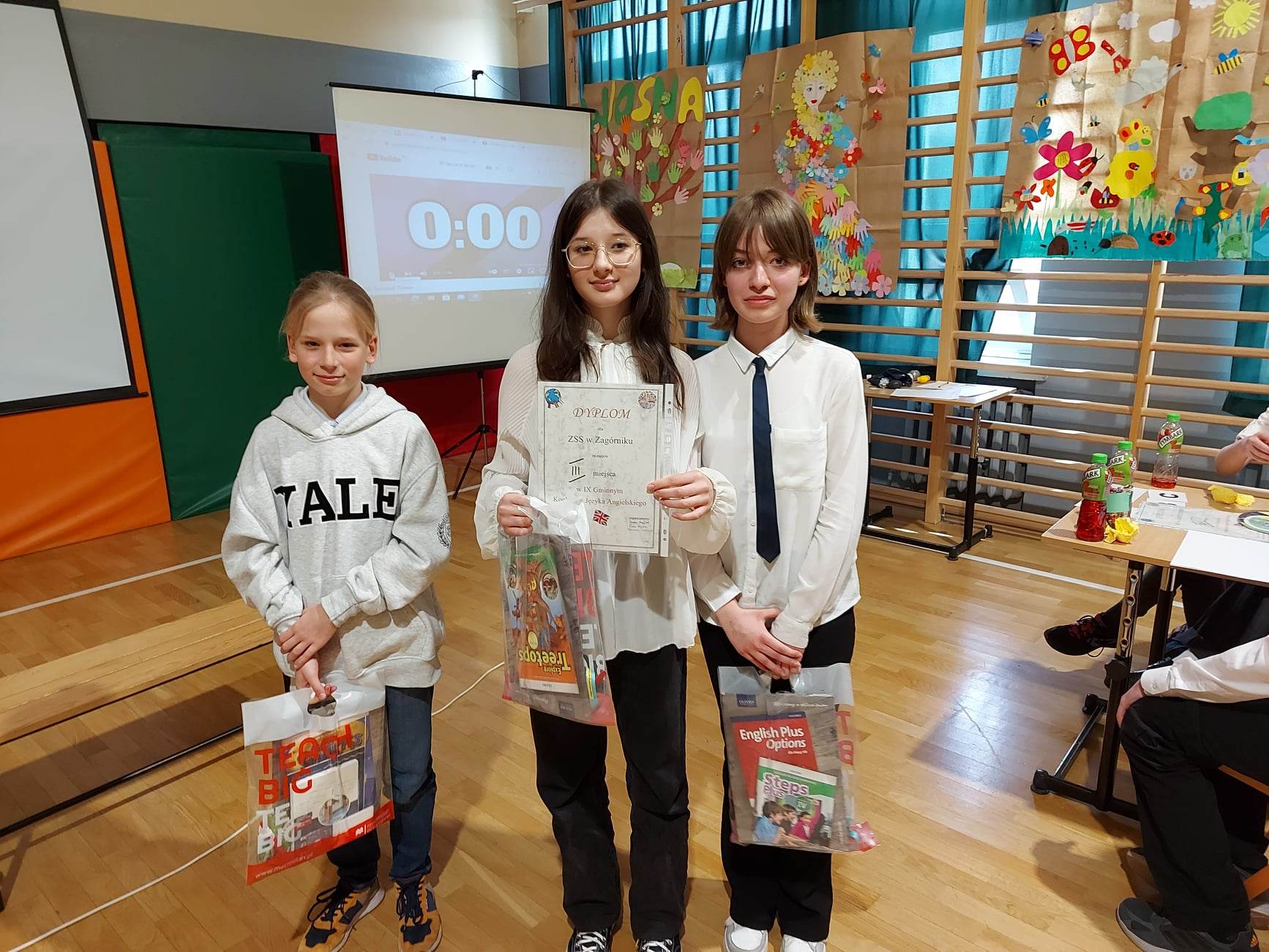 Dnia 24 marca odbył się Gminny Konkurs Języka Angielskiego, w którym wzięło udział 8 drużyn z okolicznych szkół. W konkursie uczniowie mierzyli się z pytaniami z zakresu wiedzy i słownictwa dotyczącego ekologii. Konkurs miał ciekawą formę turnieju trójosobowych drużyn. Wydarzenie uświetnił teatrzyk w języku angielskim pt. „The World Is Sick” w wykonaniu klasy 4c. Poziom Konkursu był bardzo wysoki. Wszyscy uczniowie wykazali się wysokim poziomem języka angielskiego, a wyniki były bardzo wyrównane. Zwycięstwo w konkursie przypadło drużynie z Inwaldu, drugie miejsce ZSS z Sulkowic-Łegu, a trzecie, po dogrywce, Zagórnik. Kolejne lokaty zajęły SP4, ZSS Bolecina ex equo z SP 2-grupa1, SP2-grupa 2 i SP5. Wszystkim uczestnikom gratulujemy wiedzy i zaangażowania. Zapraszamy na kolejną edycję w przyszłym roku.