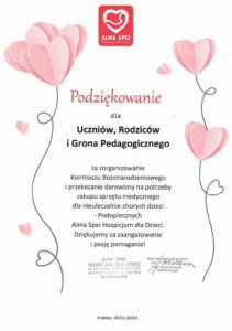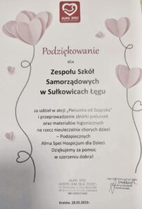 Nasza szkoła brała udział w programie „Szkoła z pasją pomagania” Hospicjum dla dzieci ALMA SPEI.