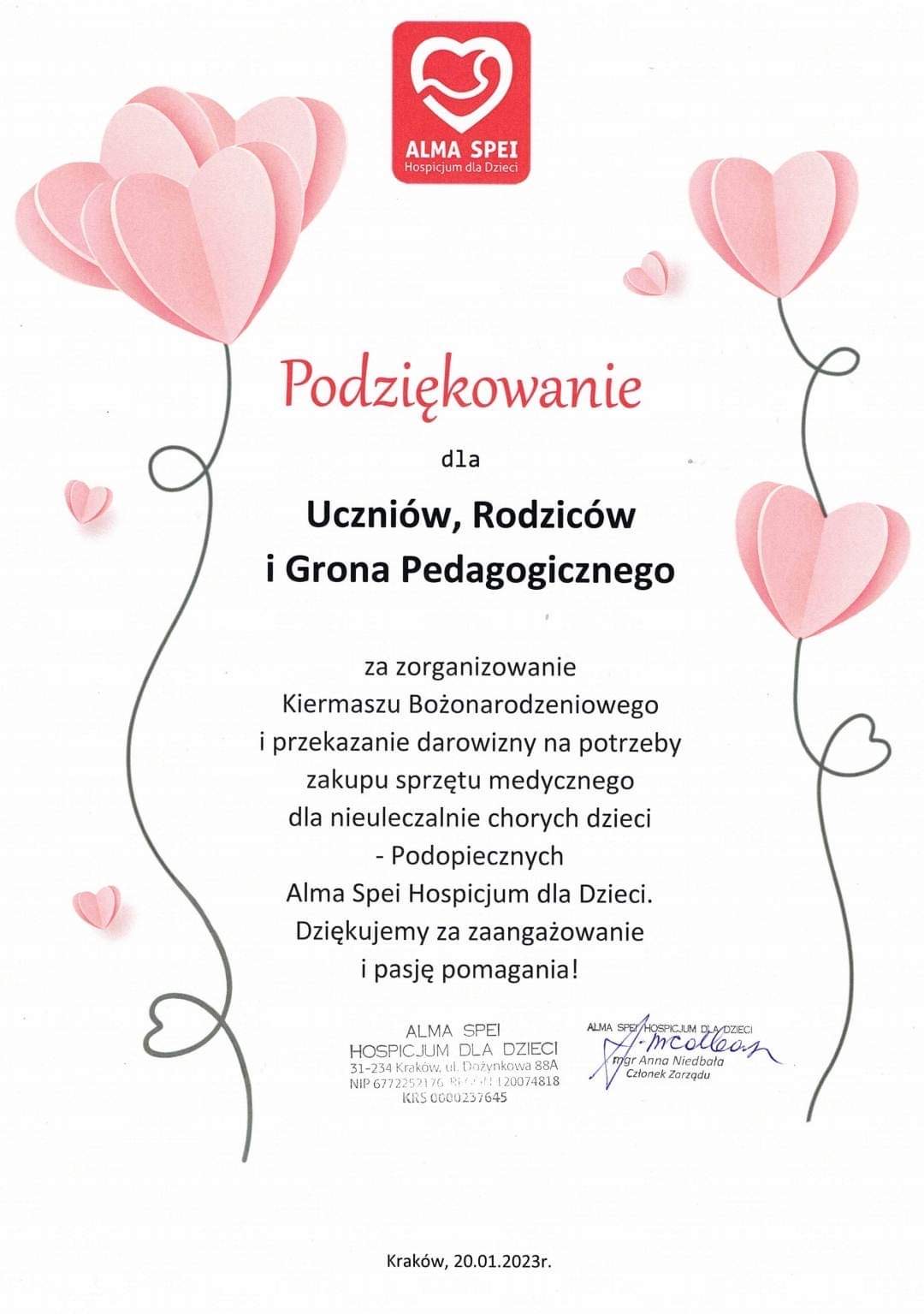 Serdecznie dziękujemy wszystkim osobom, które wsparły nasze akcje.