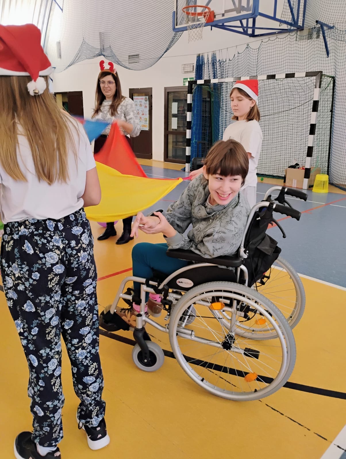 Wczorajszy Międzynarodowy Dzień Osób z Niepełnosprawnościami przypomniał nam, jak ważne jest budowanie wspierającego i otwartego społeczeństwa. Dzisiejsze Mikołajki były pełne radości i wspólnego świętowania! Nasza uczennica Kamila miała okazję aktywnie uczestniczyć w zabawach, cieszyć się świąteczną atmosferą i wspólnie z dziewczynami z klasy 6b otwierać drobne upominki od Mikołaja.