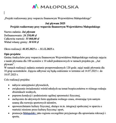 Regulamin rekrutacji i uczestnictwa w Projekcie „Już Pływam” :