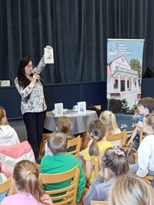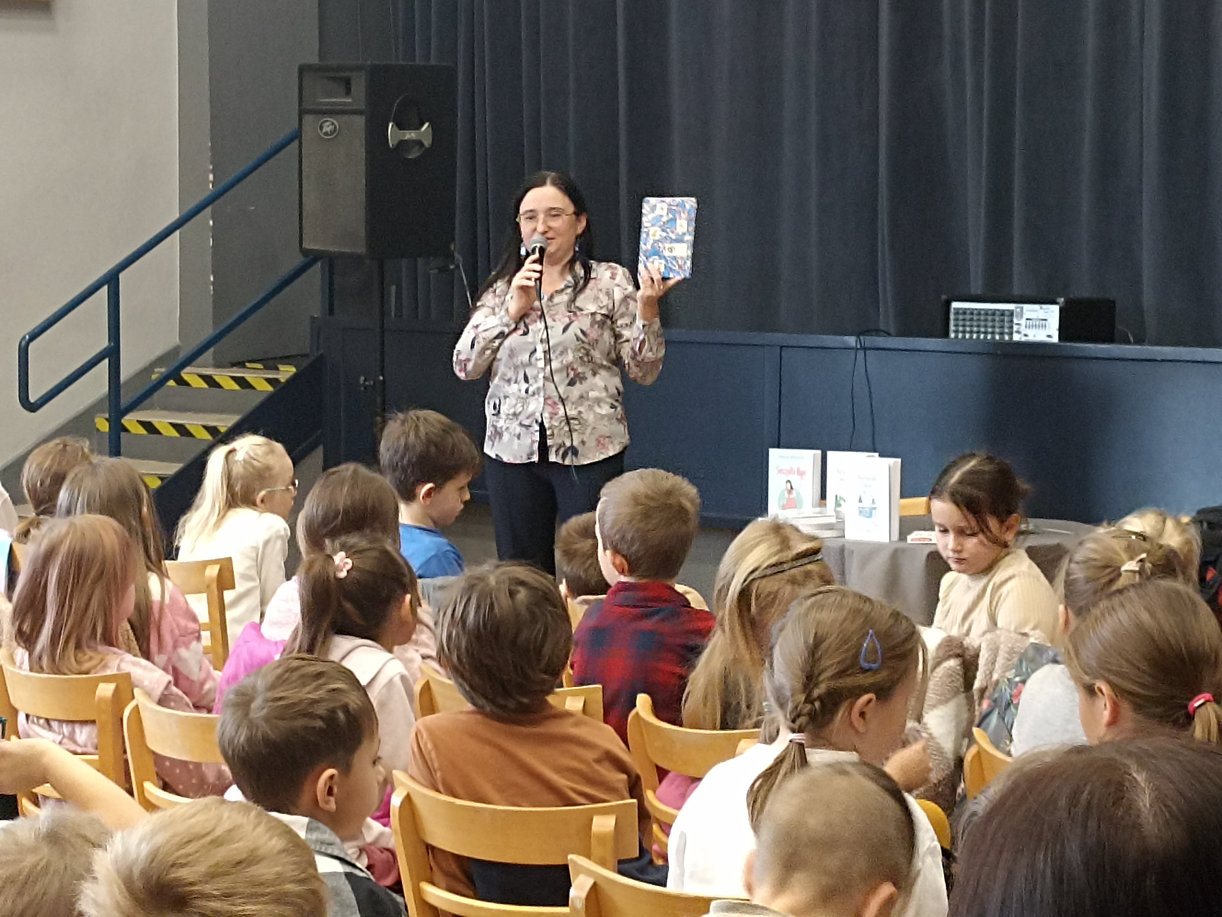 Dzieci miały okazję porozmawiać z pisarką i dowiedzieć się skąd bierze pomysły na swoje powieści. To było bardzo ciekawe spotkanie.