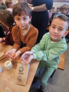 Podczas wizyty pierwszoklasiści wzięli udział w kreatywnych warsztatach – samodzielnie