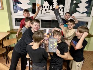 Dzisiejsza noc była naprawdę wyjątkowa! Uczniowie klas 4B i 5B spędzili w szkole mikołajkową nockę pełną integracji, rozmów i wspólnych atrakcji. Najpierw odbyły się zajęcia poświęcone tematowi hejtu i życzliwości, a później każdy znalazł coś dla siebie: jedni grali w gry, inni szydełkowali, część wymieniała się kartami, a jeszcze inni zaszyli się z książką.