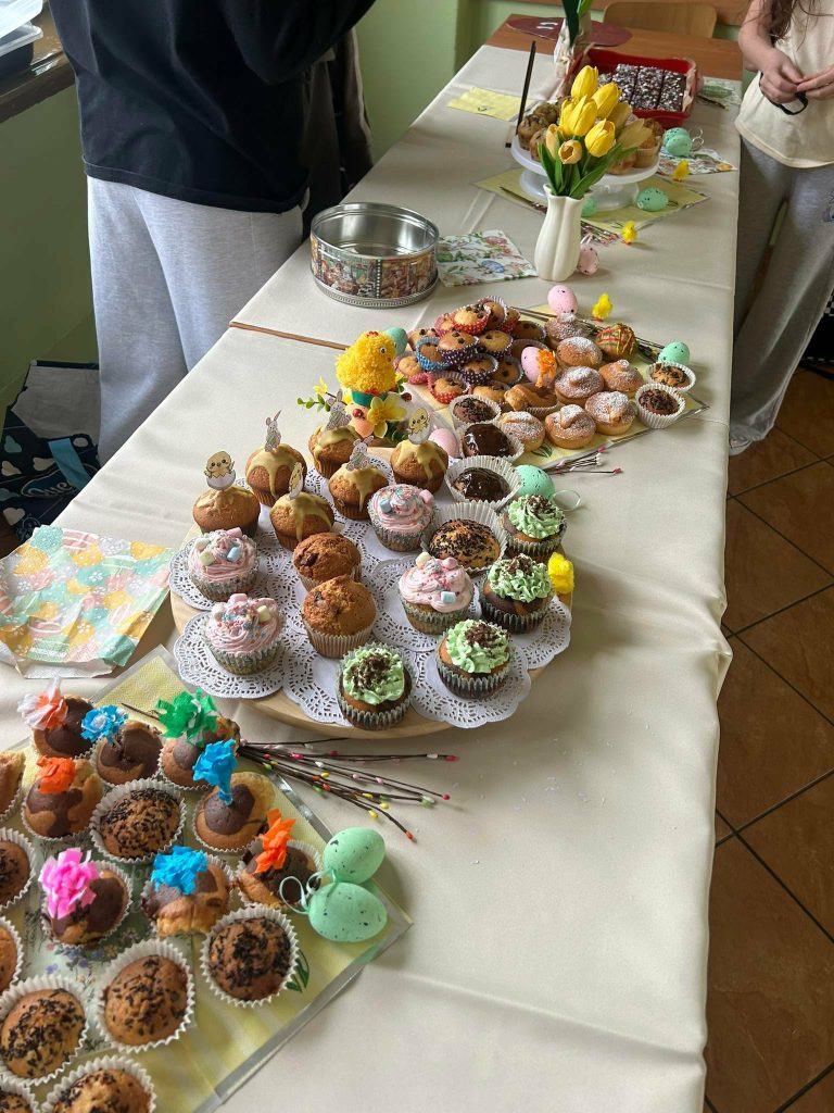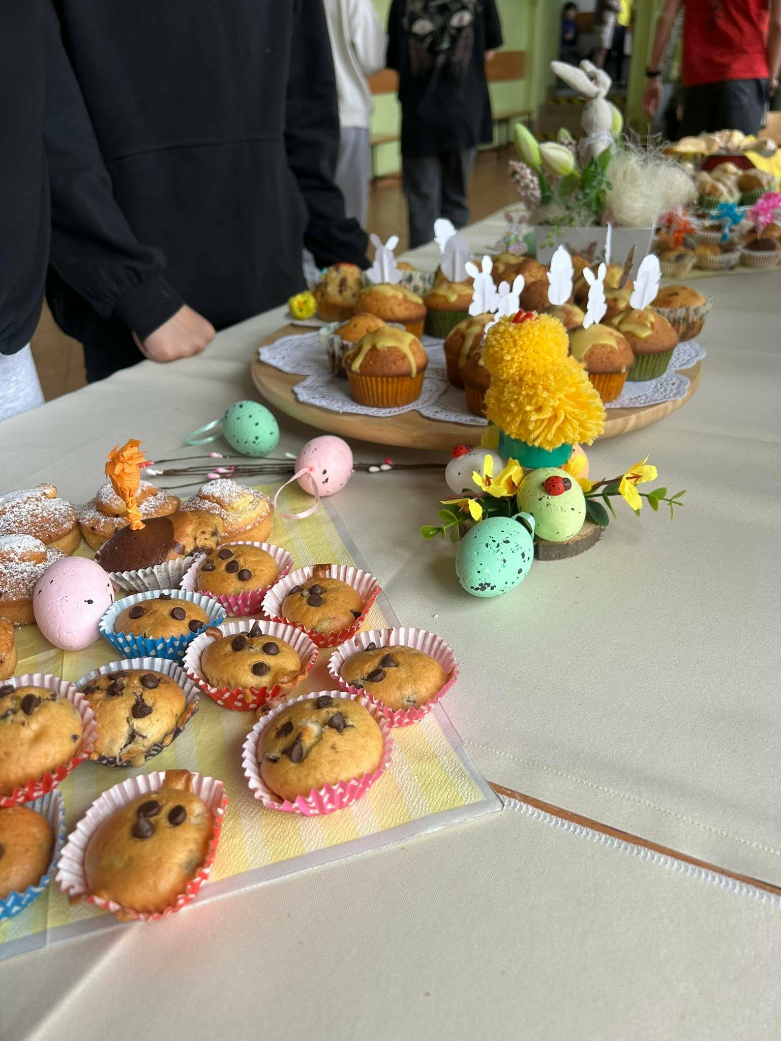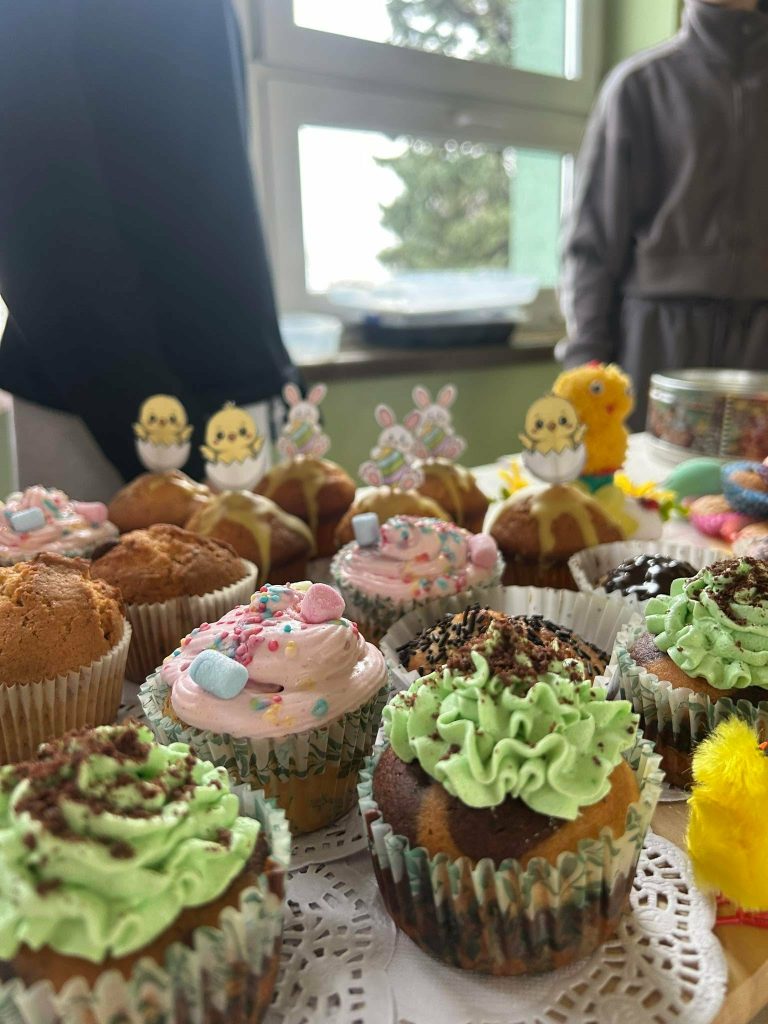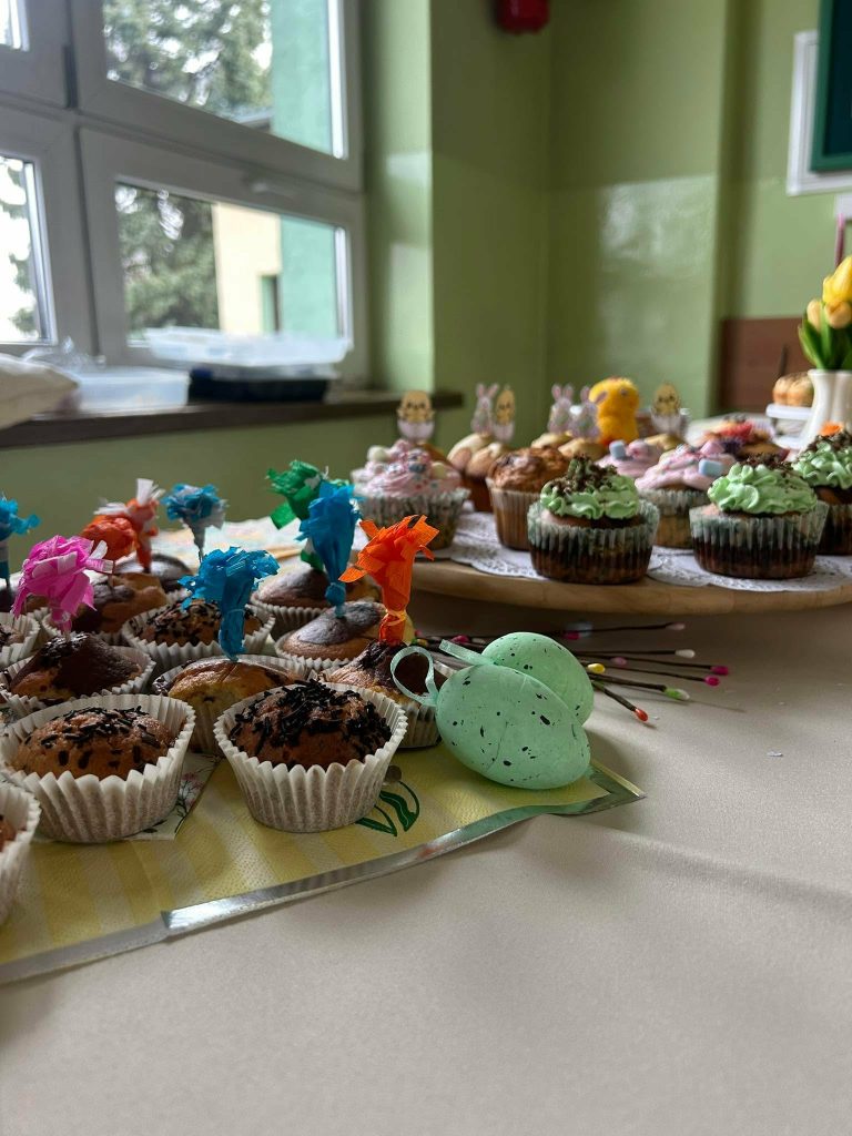 W dniu 24 marca w naszej szkole odbył się długo wyczekiwany wiosenny kiermasz słodkości. Od samego rana na szkolnym korytarzu unosił się zapach pysznych wypieków. Zainteresowanie było ogromne – kolorowe babeczki, muffinki i inne pyszności znikały ze stołów w mgnieniu oka.