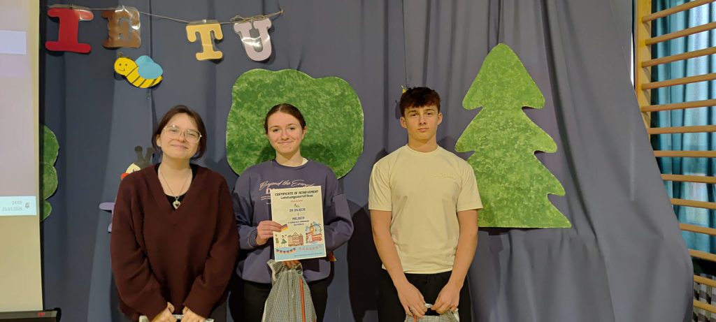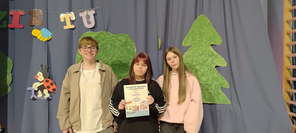 🥈 II miejsce – KLASA 8B (Kacper Lurka, Claudia Cibor, Zuzanna Ćwiertka)